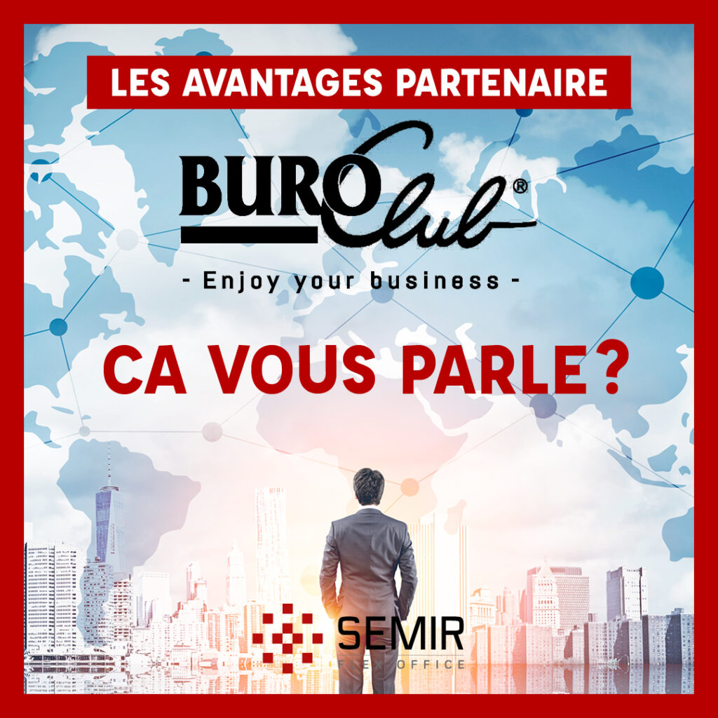 En étant Résident ou Domicilié Premium à la SEMIR Flex Office, vous pouvez profiter d’une journée par mois gratuite dans le Buro Club de votre choix. Vous trouverez ainsi, lors de vos déplacements, un environnement et une ambiance professionnelle propices aux affaires, un bureau, une salle de réunion pour recevoir vos clients, fournisseurs et partenaires dans les meilleures conditions.